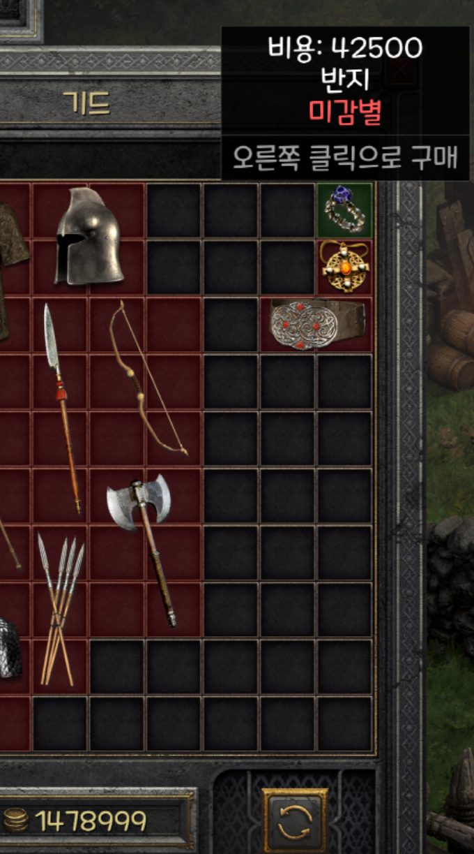 모서리는 상점 물품 가격 15%하락이라는 꿀옵션을 가지고 있어서 세번째 사진을 보시면 50,000짜리 도박이 42,500으로 변경된 것을 보실 수 있습니다.